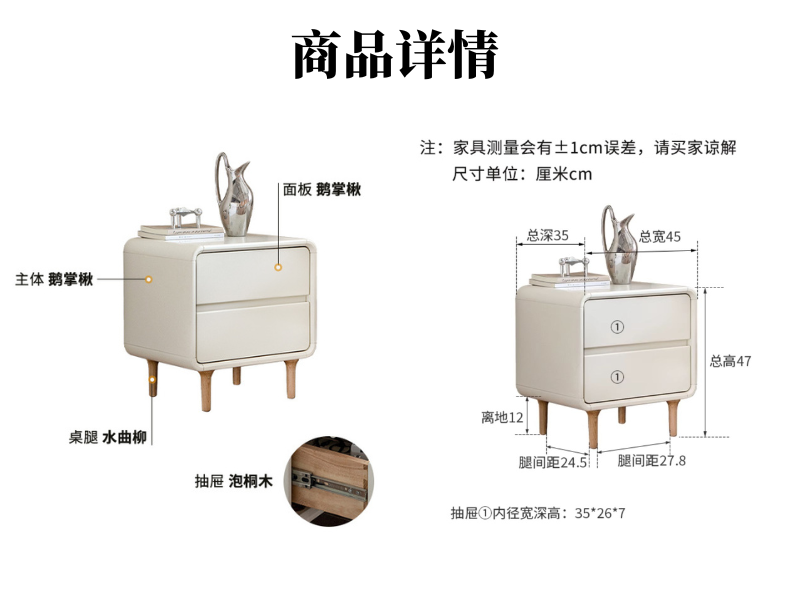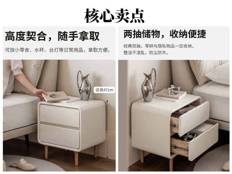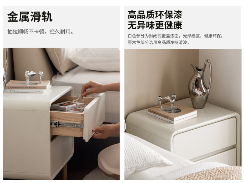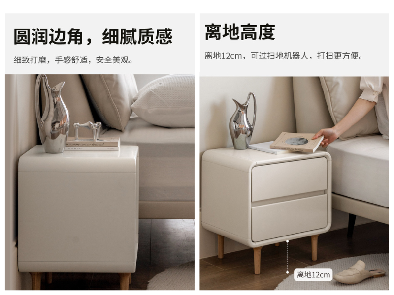 实木床头柜奶油风奶糖床边柜白色床边收纳柜卧室简约柜子