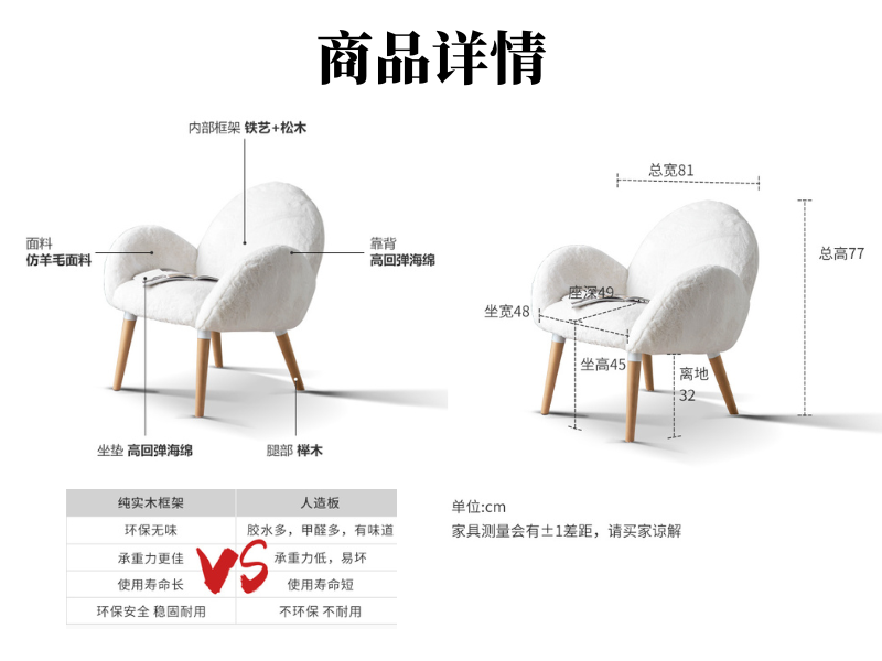 布艺单人沙发椅简约现代欧洲榉木休闲椅轻奢客厅靠背椅子
