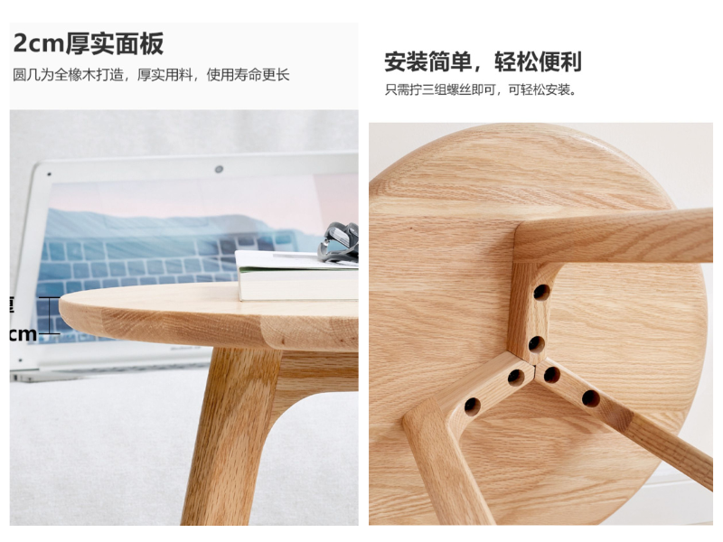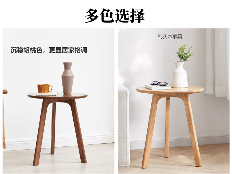 实木茶几简约橡木角几北欧小户型边桌客厅小圆桌沙发边几