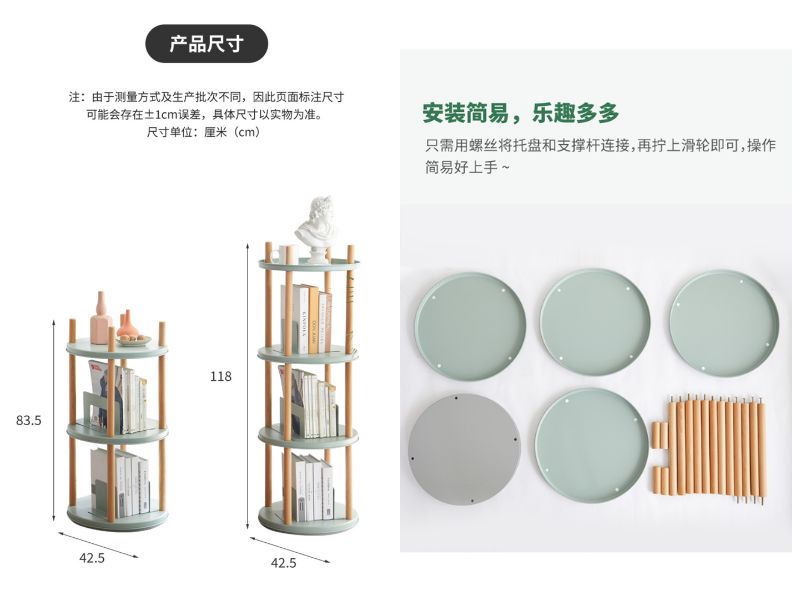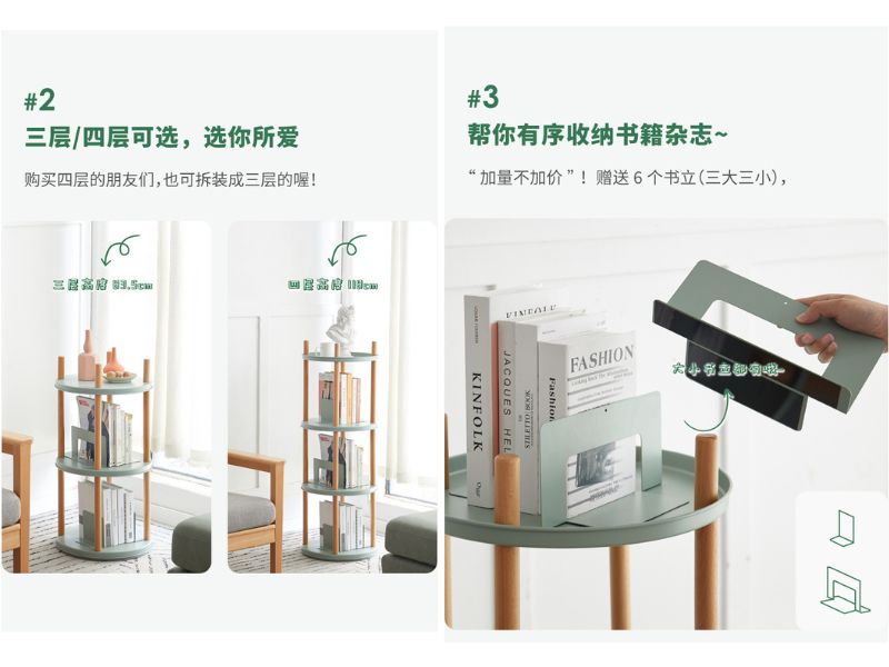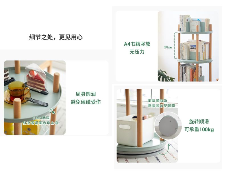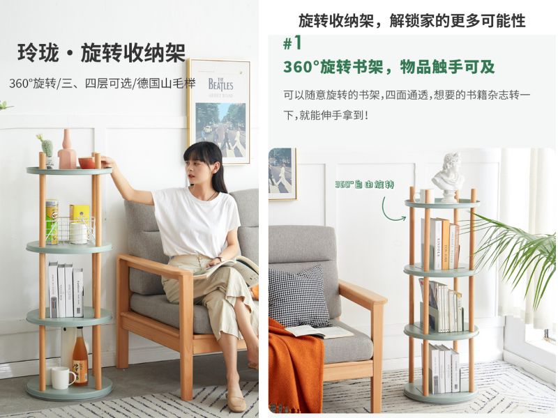 实木旋转收纳架多层图书收纳简易小书柜书房落地置物架