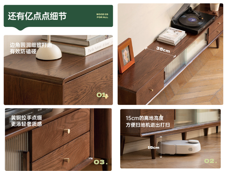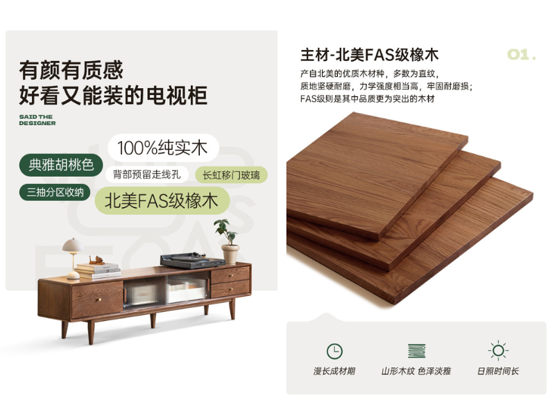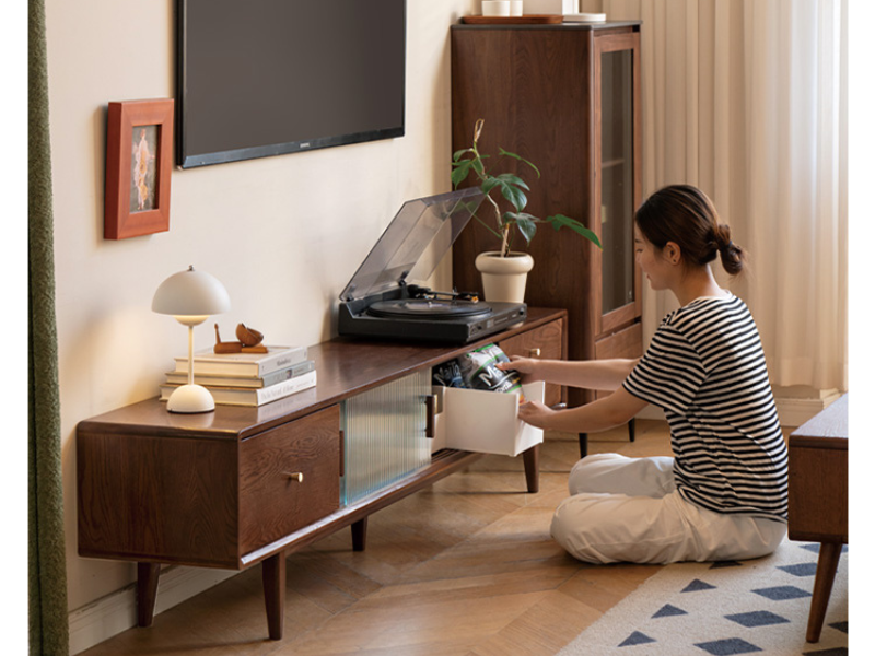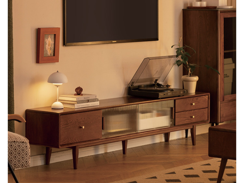 实木电视柜玻璃地柜茶几组合北欧小户型客厅电视墙储物柜