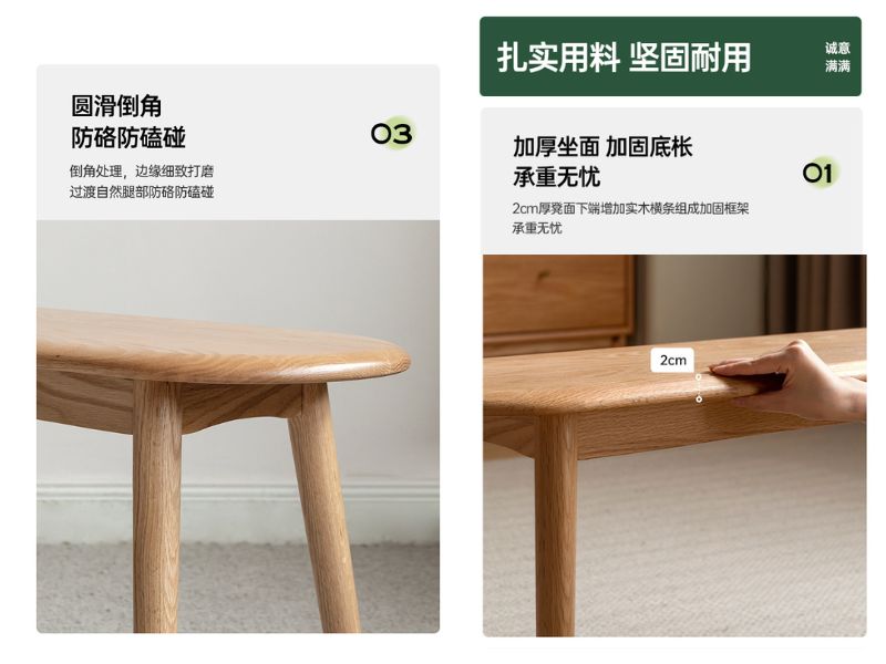 实木长条凳家用橡木条凳仙贝凳简约板凳原木长凳床尾凳