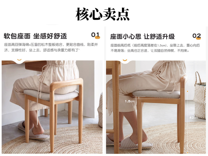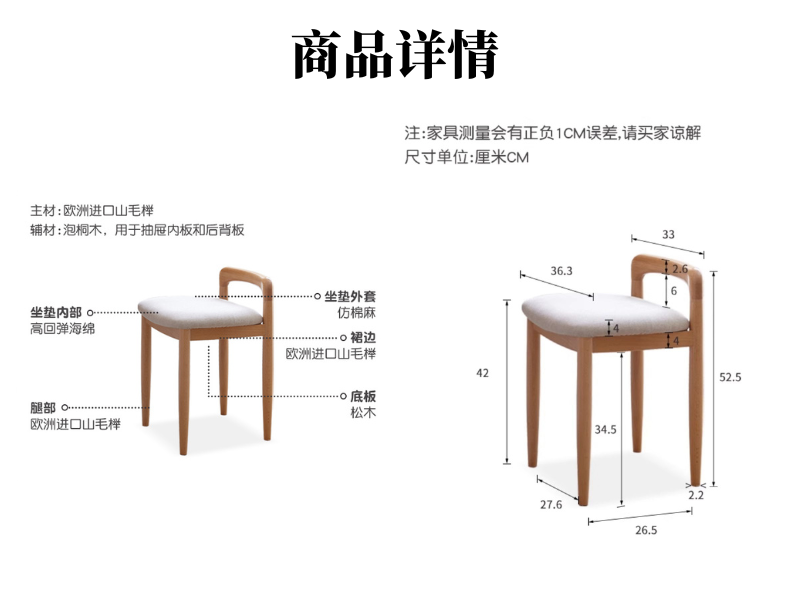 卧室梳妆凳实木化妆椅子软座日式化妆凳子靠背简约小方凳