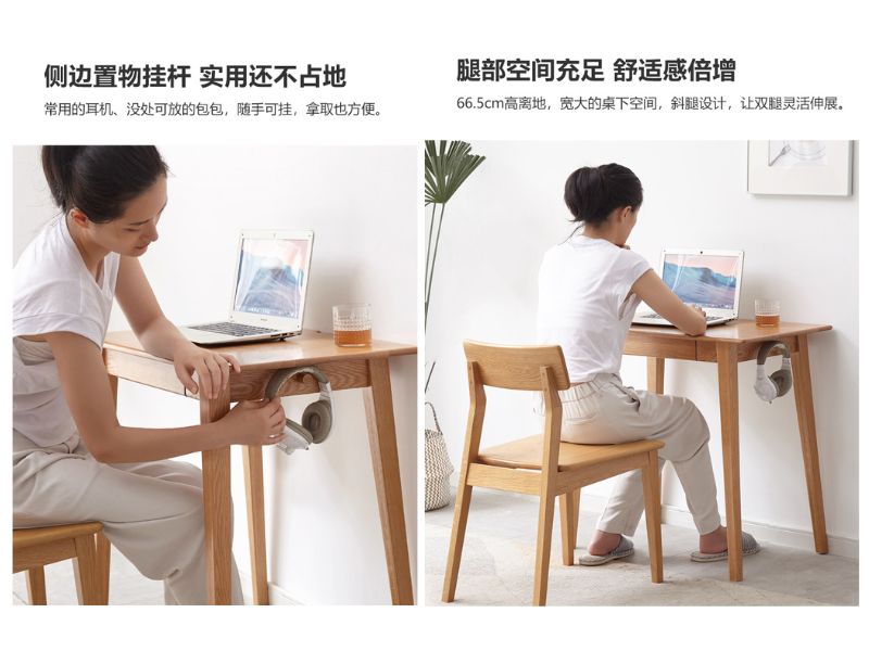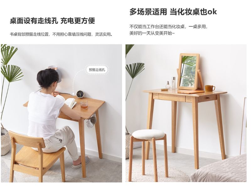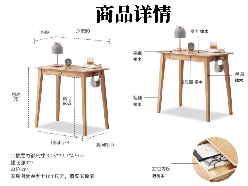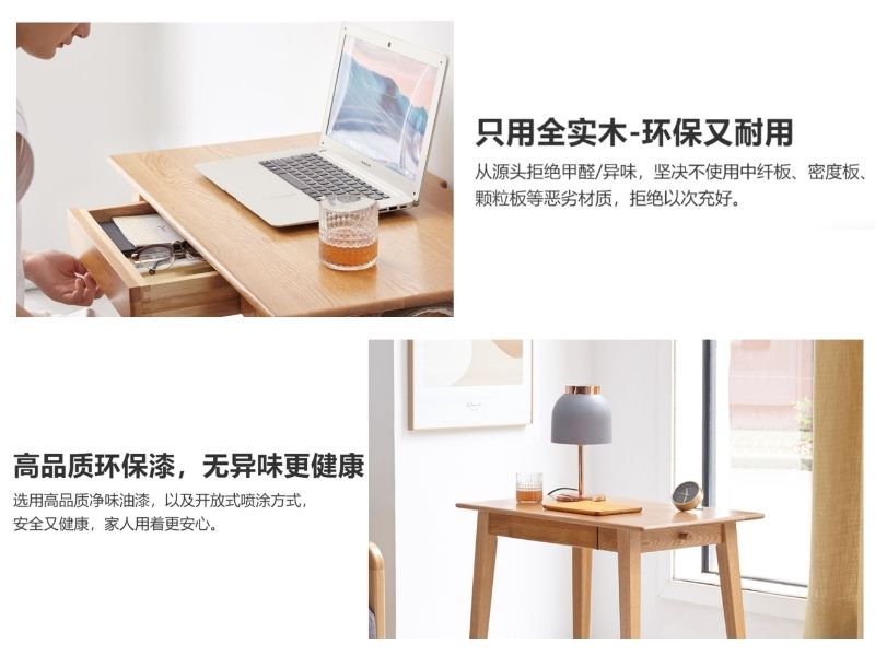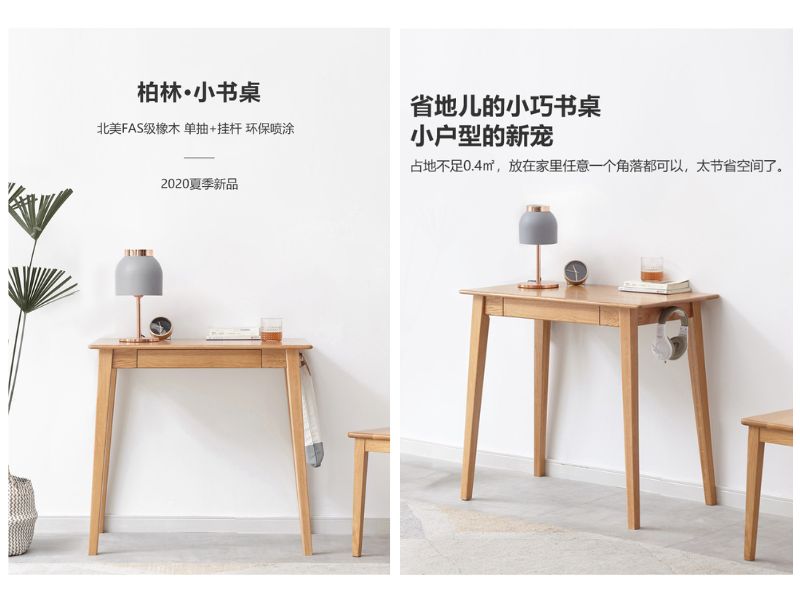 实木书桌小尺寸橡木原木色办公桌家用写字桌小户型桌子