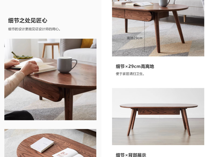 实木茶几原木极简喝茶桌小户型阳台茶台客厅胡桃色家具
