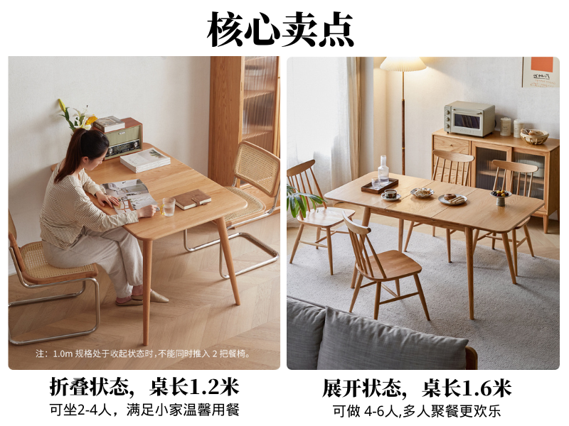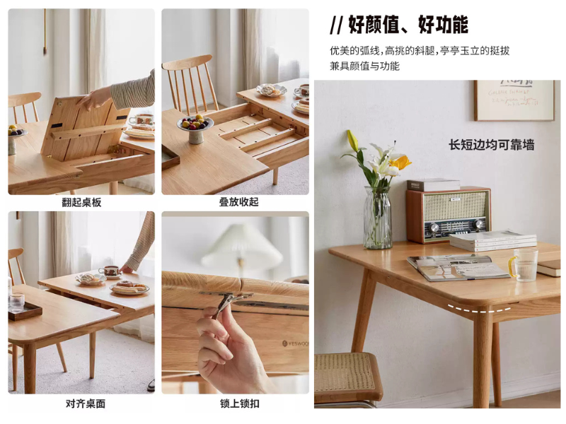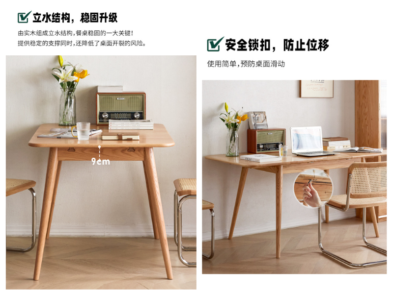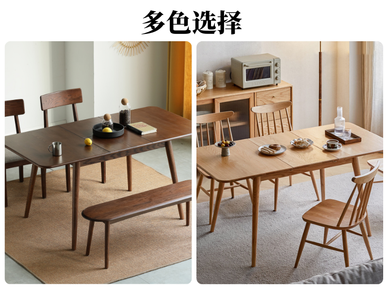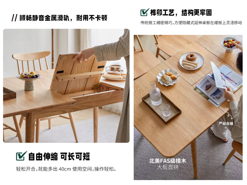 实木伸缩餐桌现代简约橡木饭桌原木餐桌椅北欧餐厅折叠桌