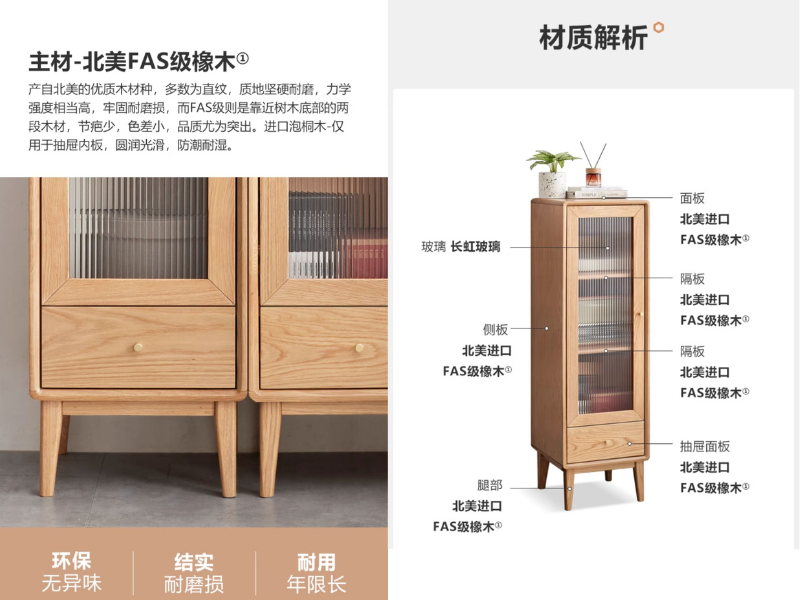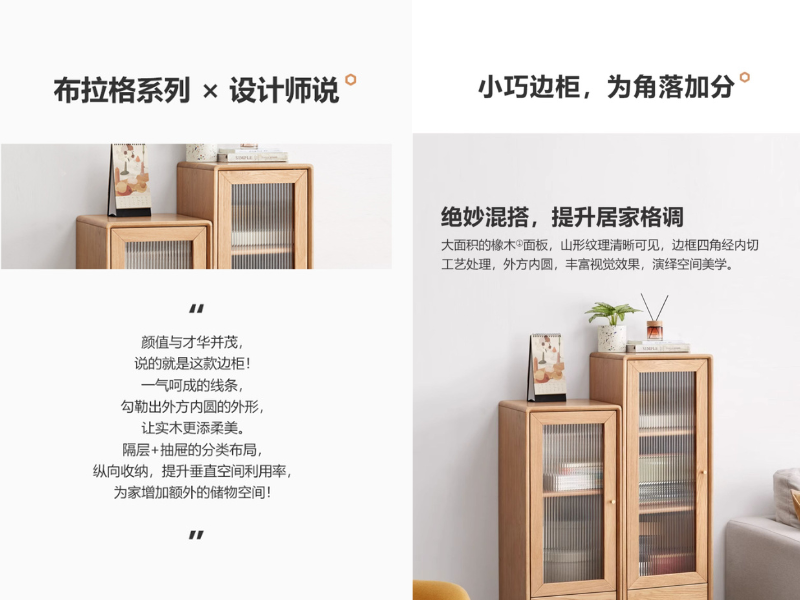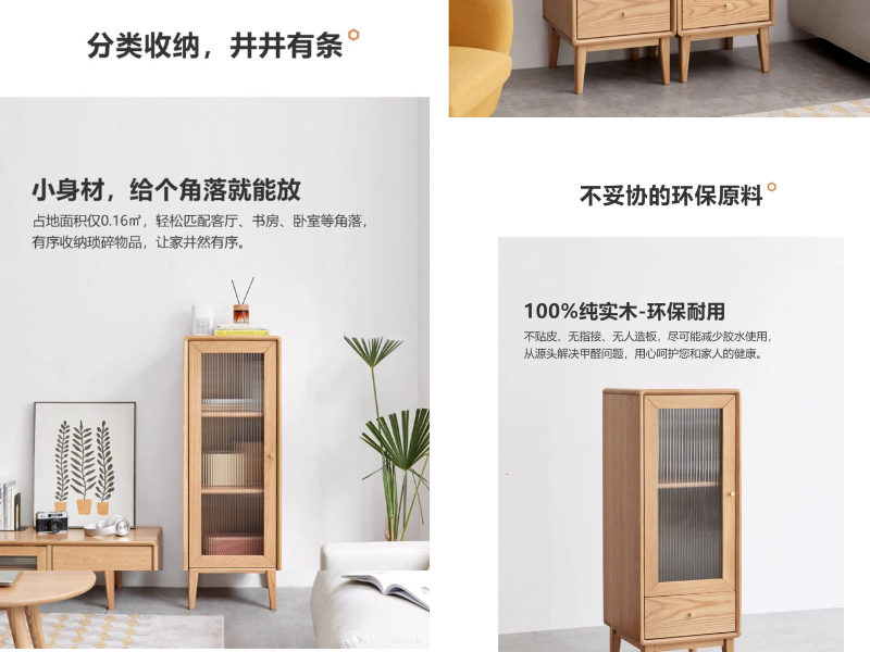 实木客厅边柜现代简约橡木置物柜北欧小户型墙角收纳窄柜