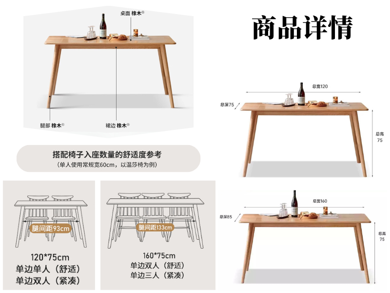 实木餐桌现代简约饭桌小户型橡木桌椅热销餐厅家具办公桌