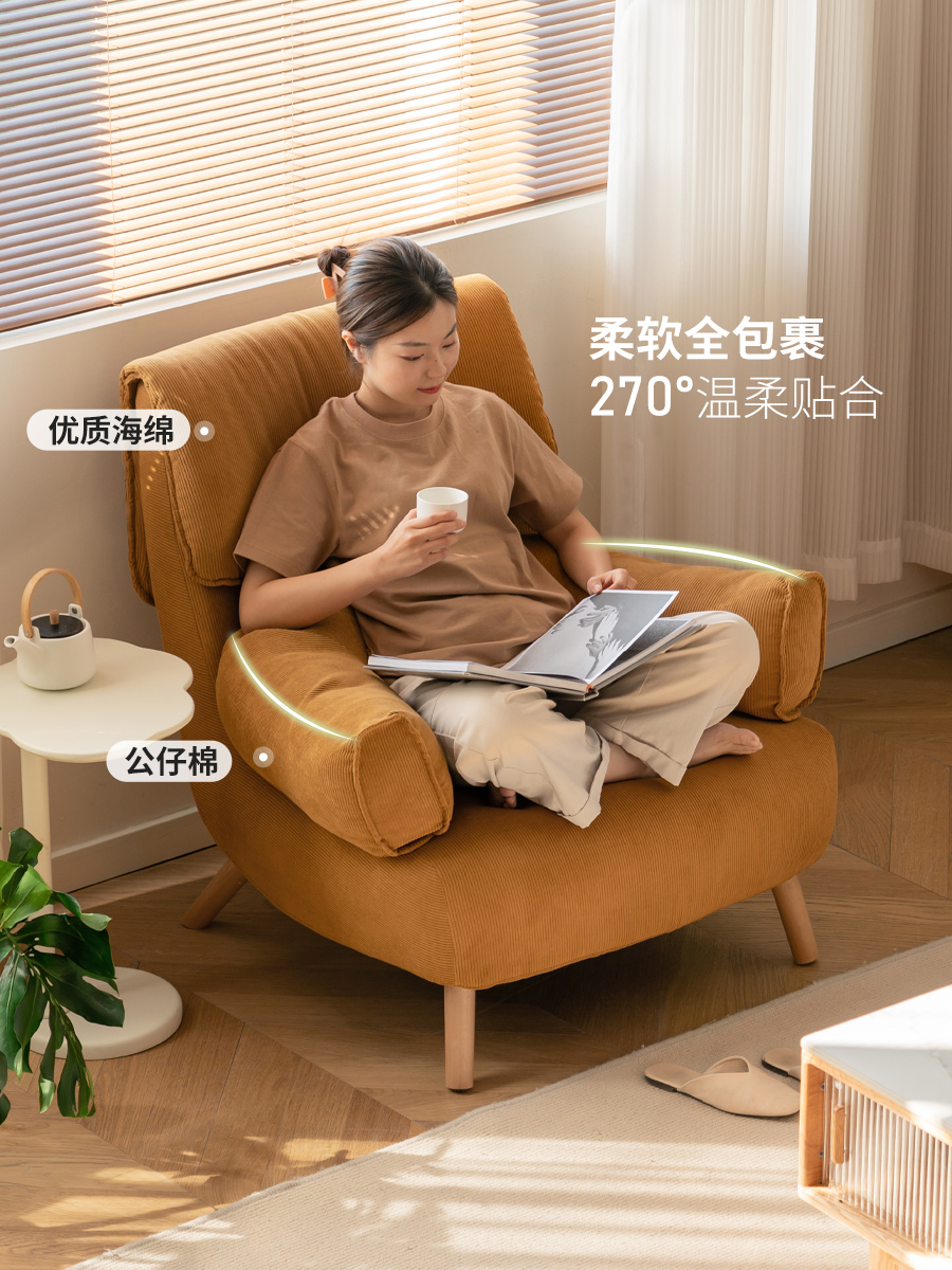 布艺沙发椅单人沙发家用小户型客厅懒人躺椅阳台休闲椅
