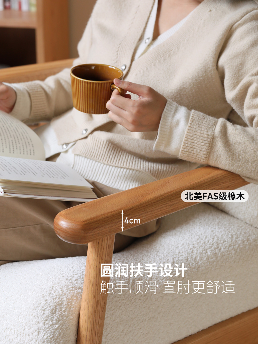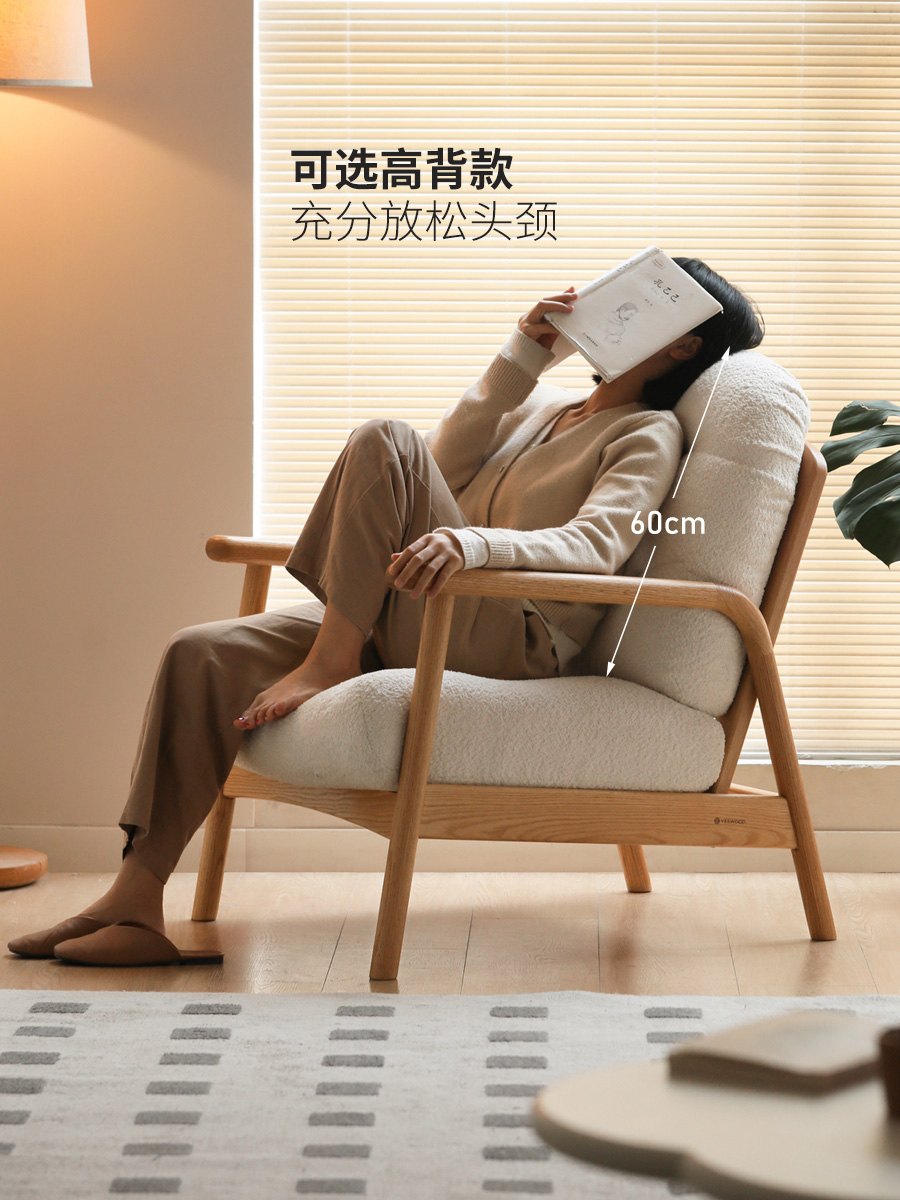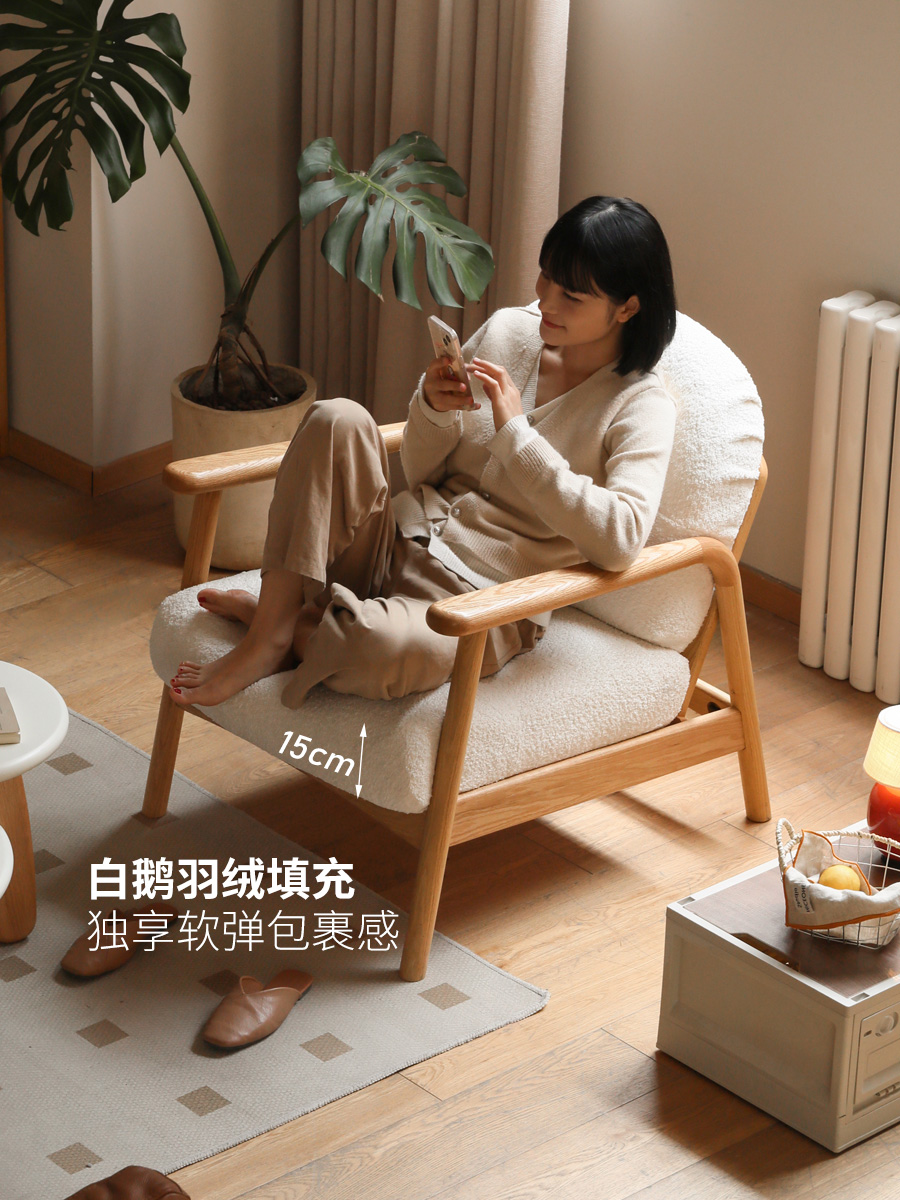实木沙发椅客厅现代简约橡木椅子阳台单人椅原木风休闲椅