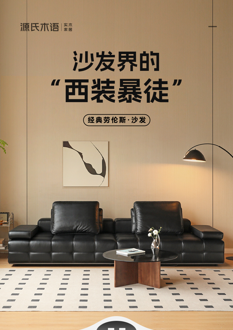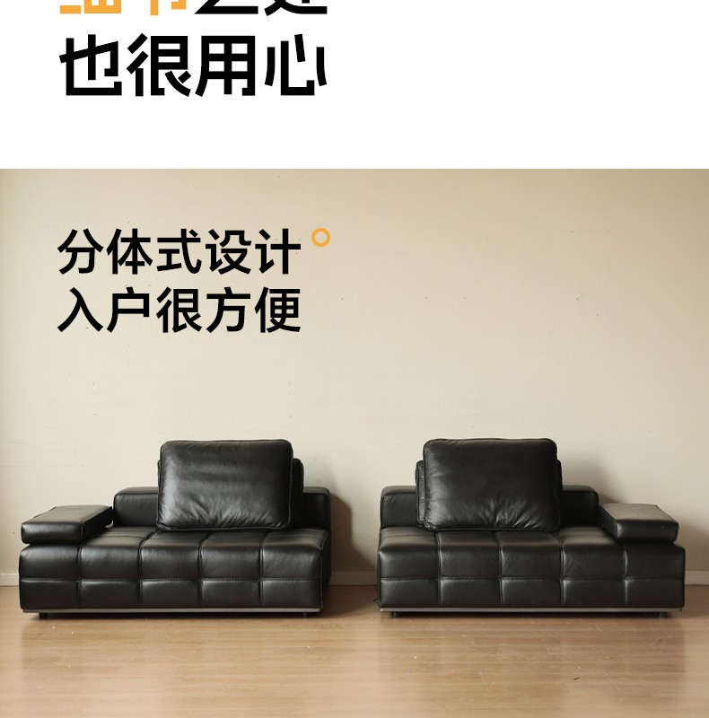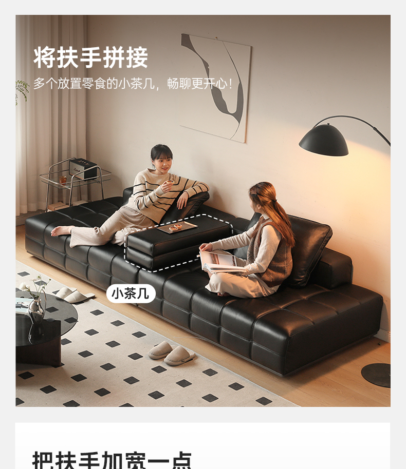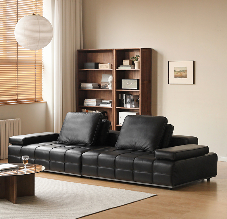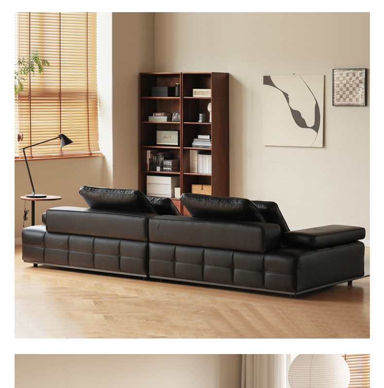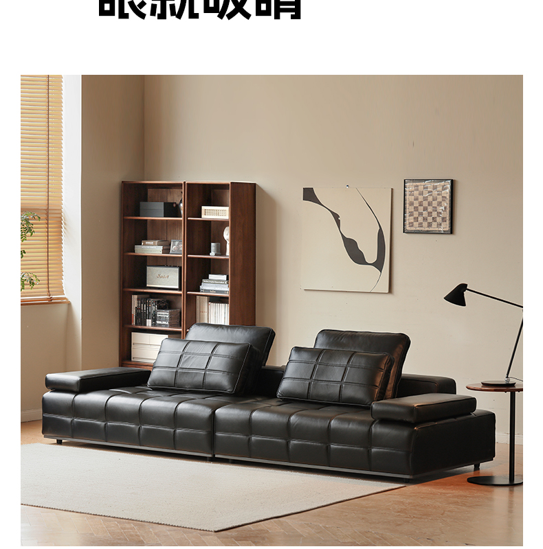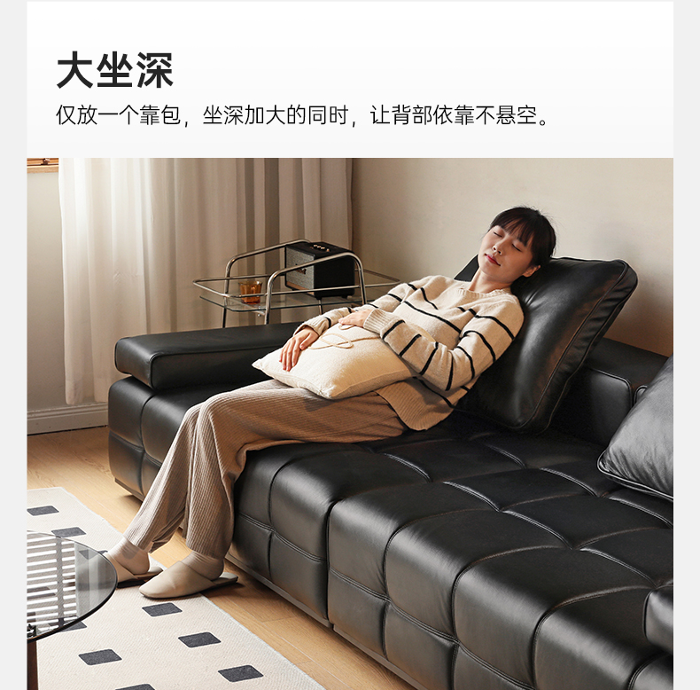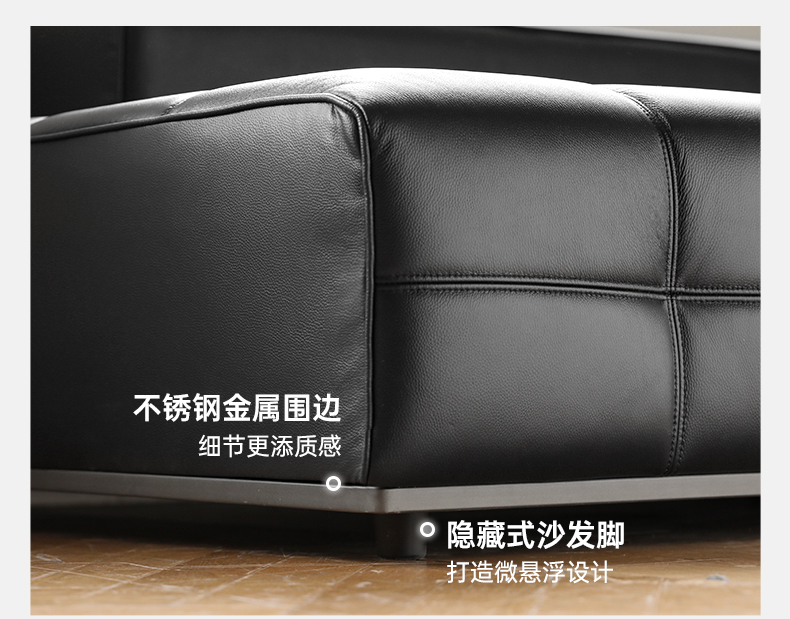 真皮沙发客厅意式极简黑色直排沙发头层黄牛皮劳伦斯沙发