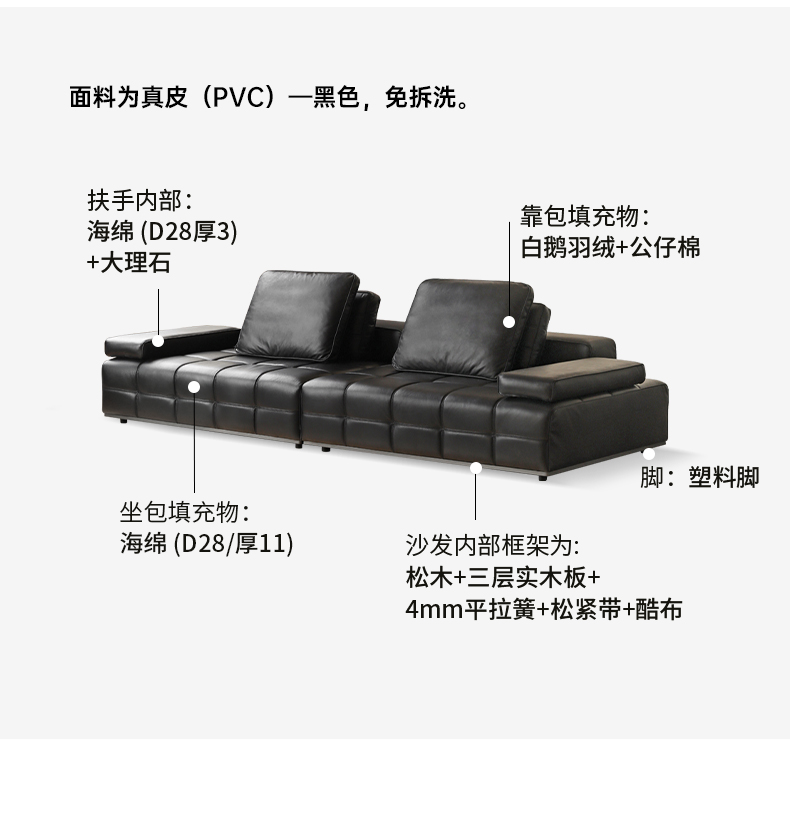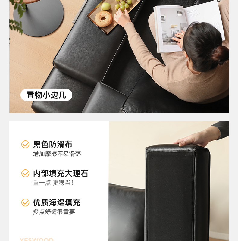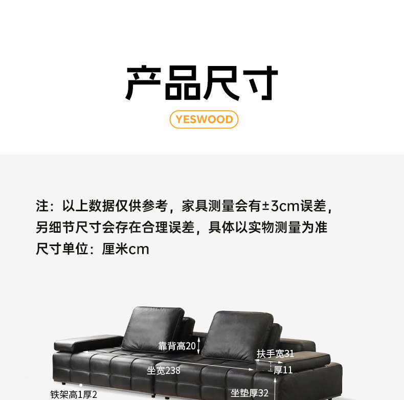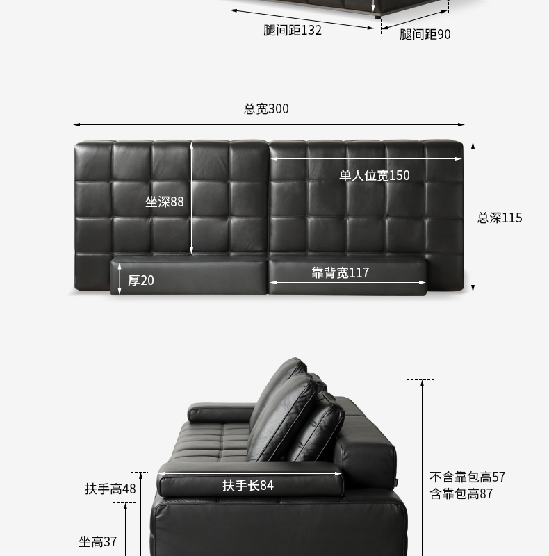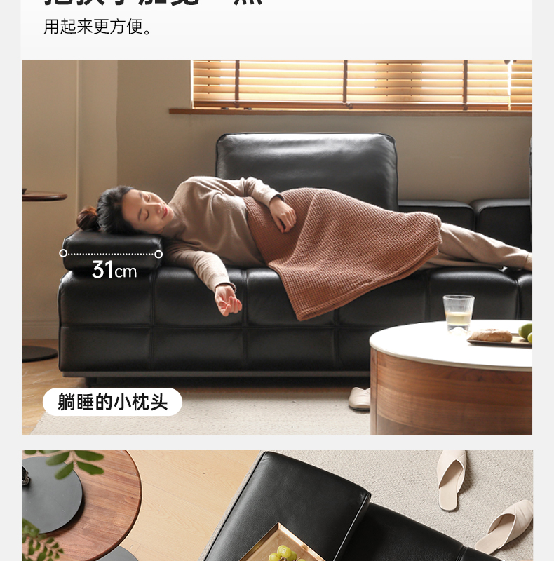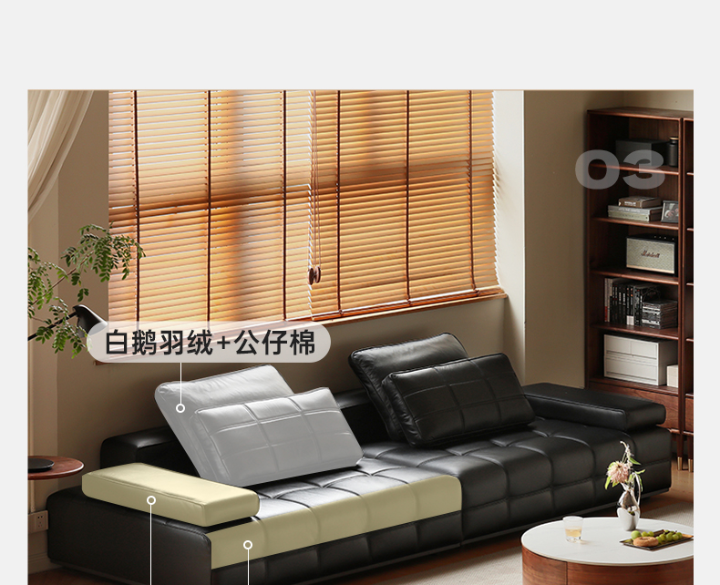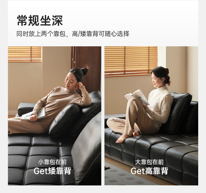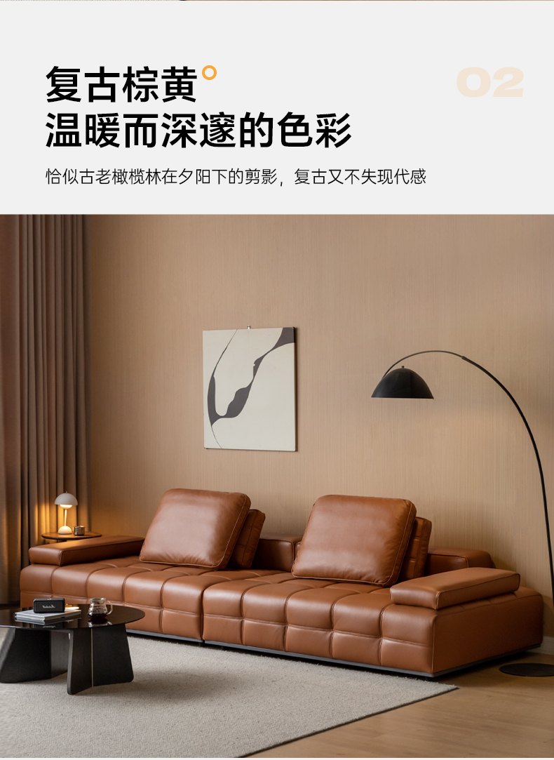 真皮沙发客厅意式极简黑色直排沙发头层黄牛皮劳伦斯沙发