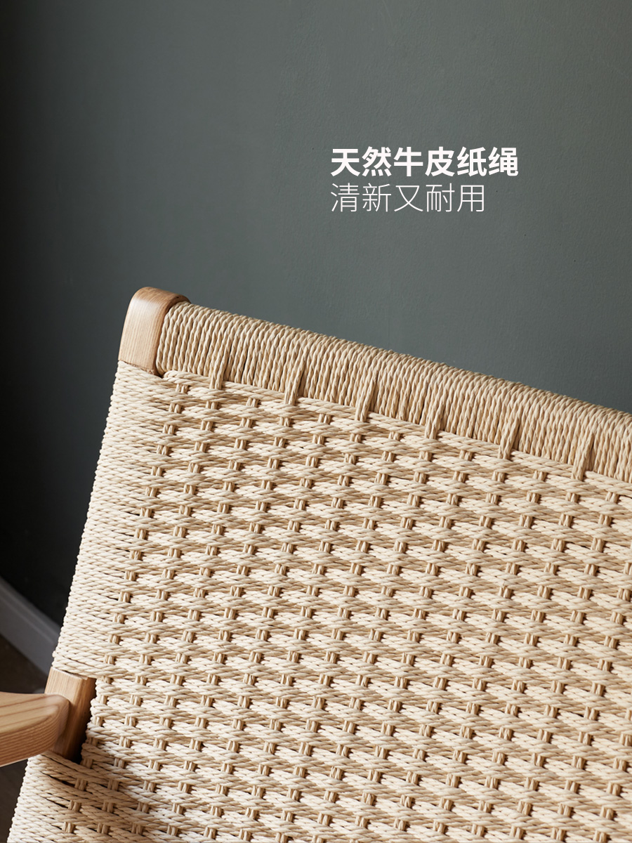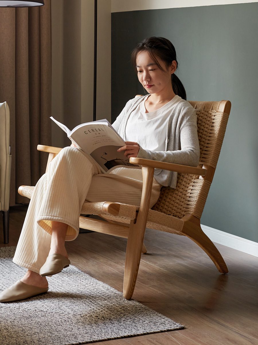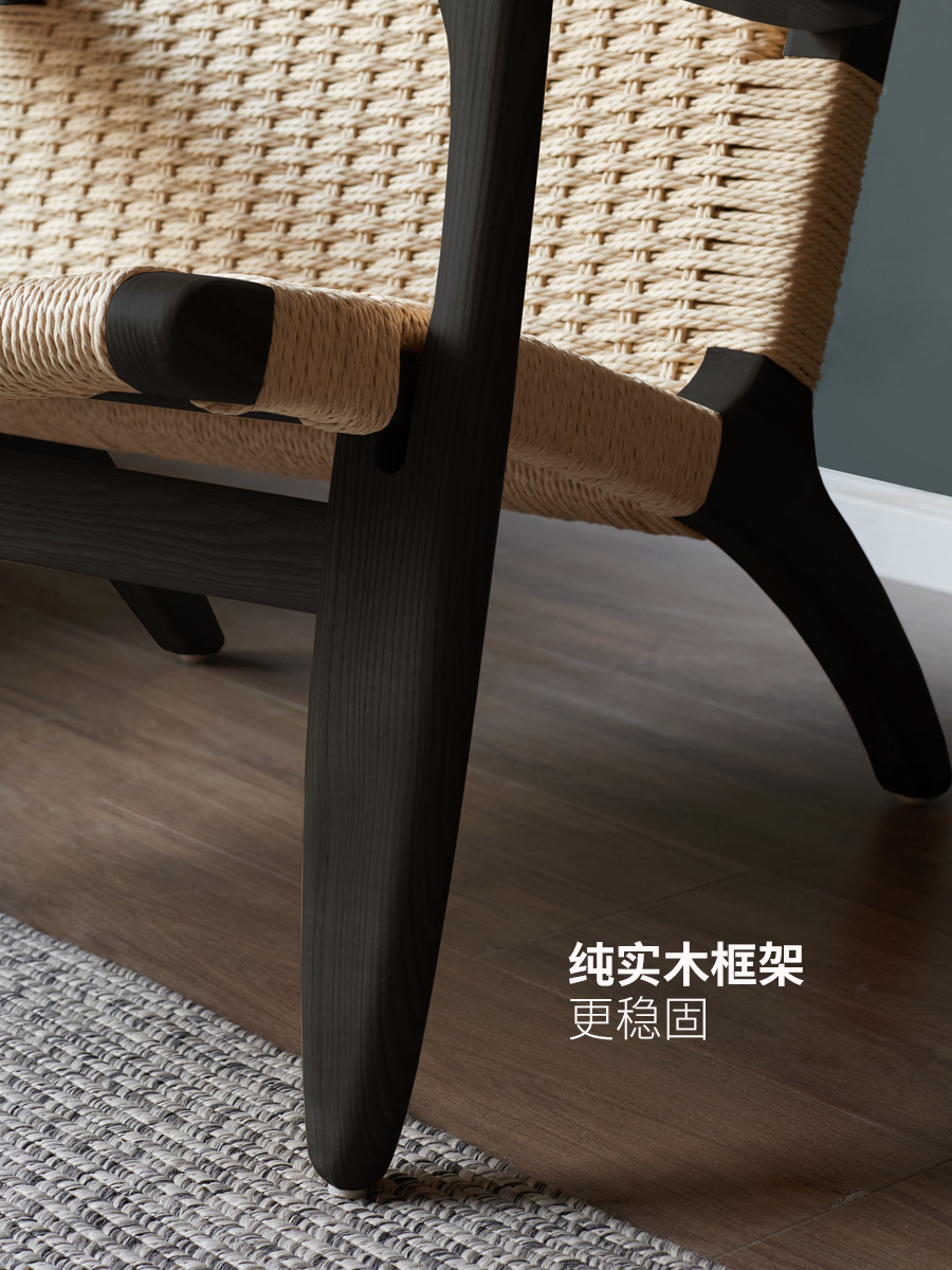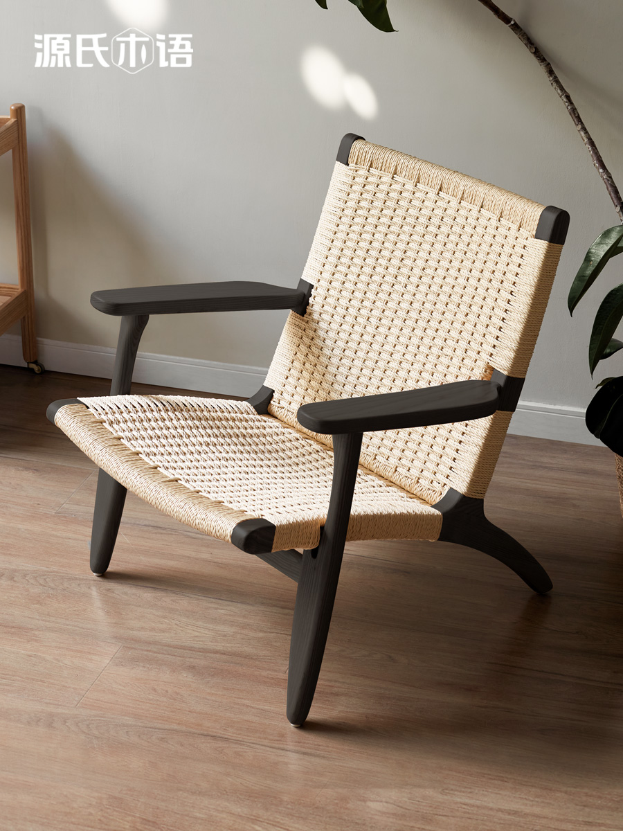 绳编实木沙发椅北欧阳台休闲椅子侘寂风小户型靠背懒人椅