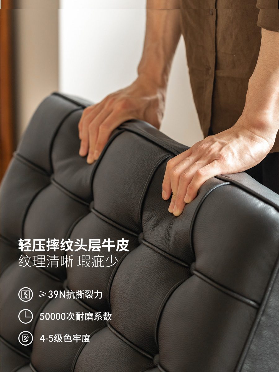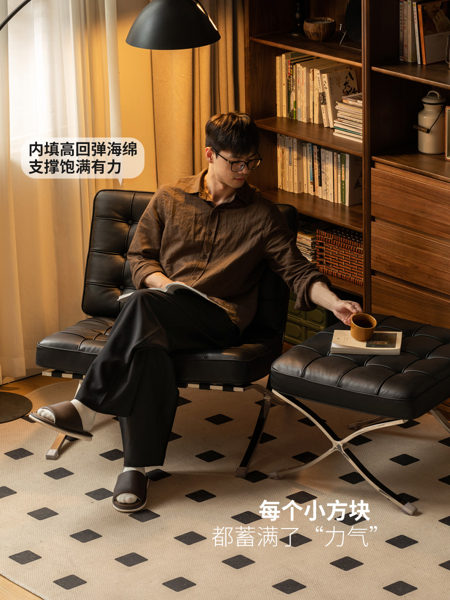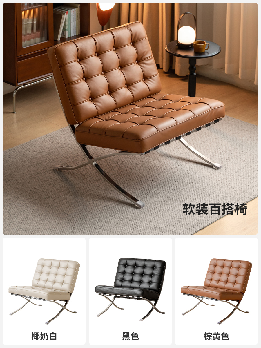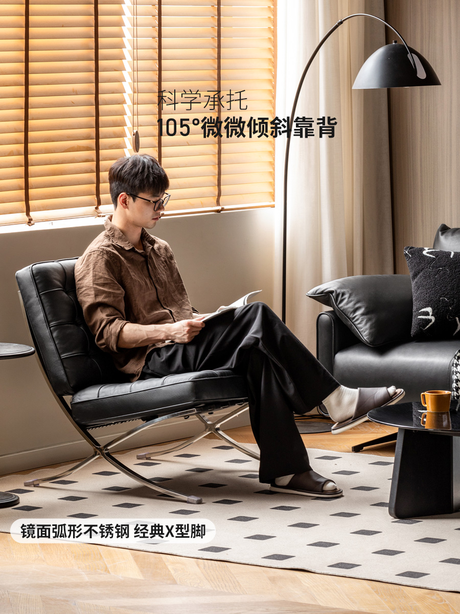 真皮沙发椅客厅黑色单人椅阳台休闲椅意式复古巴塞罗那椅