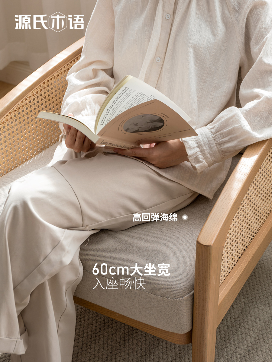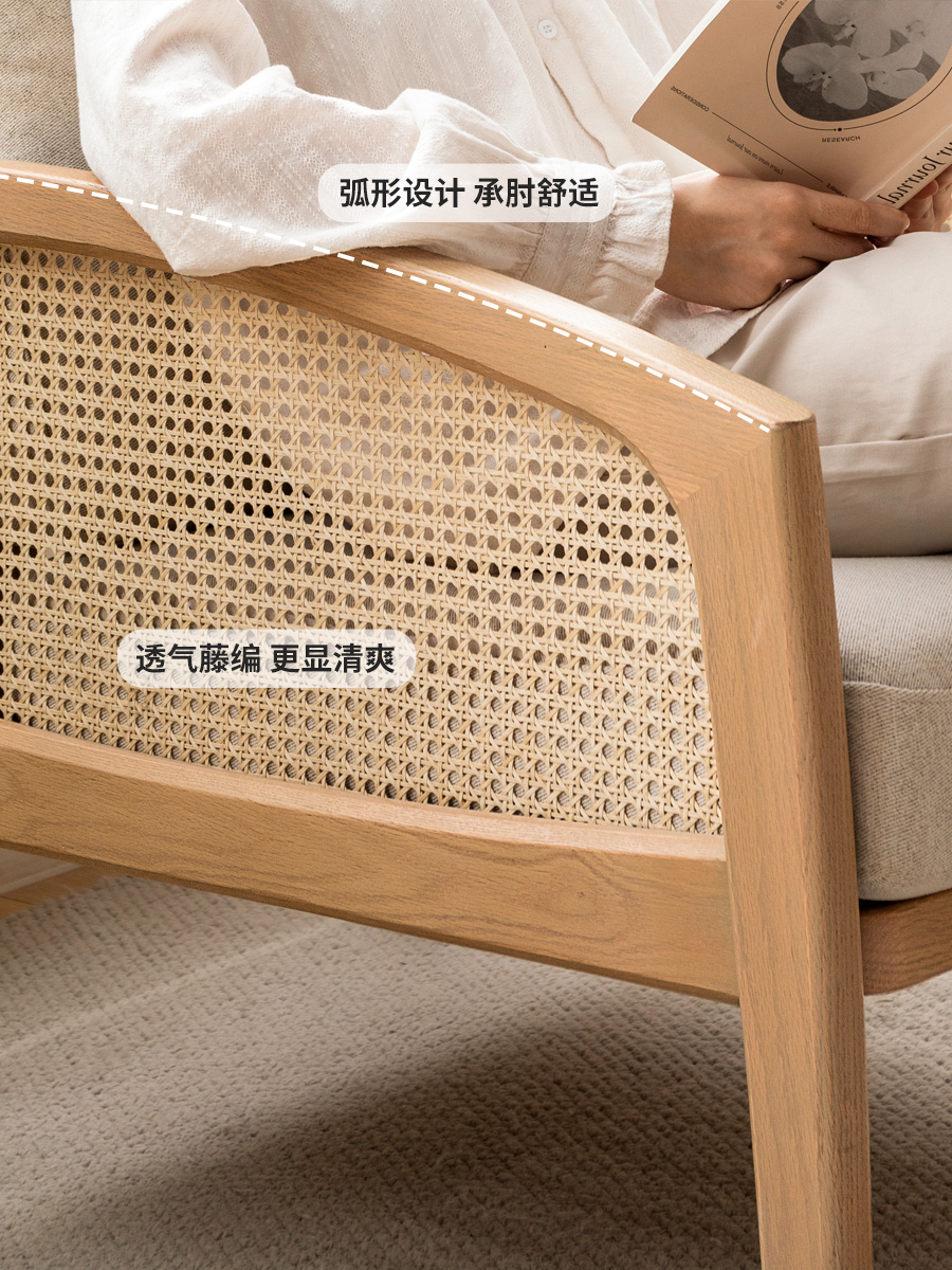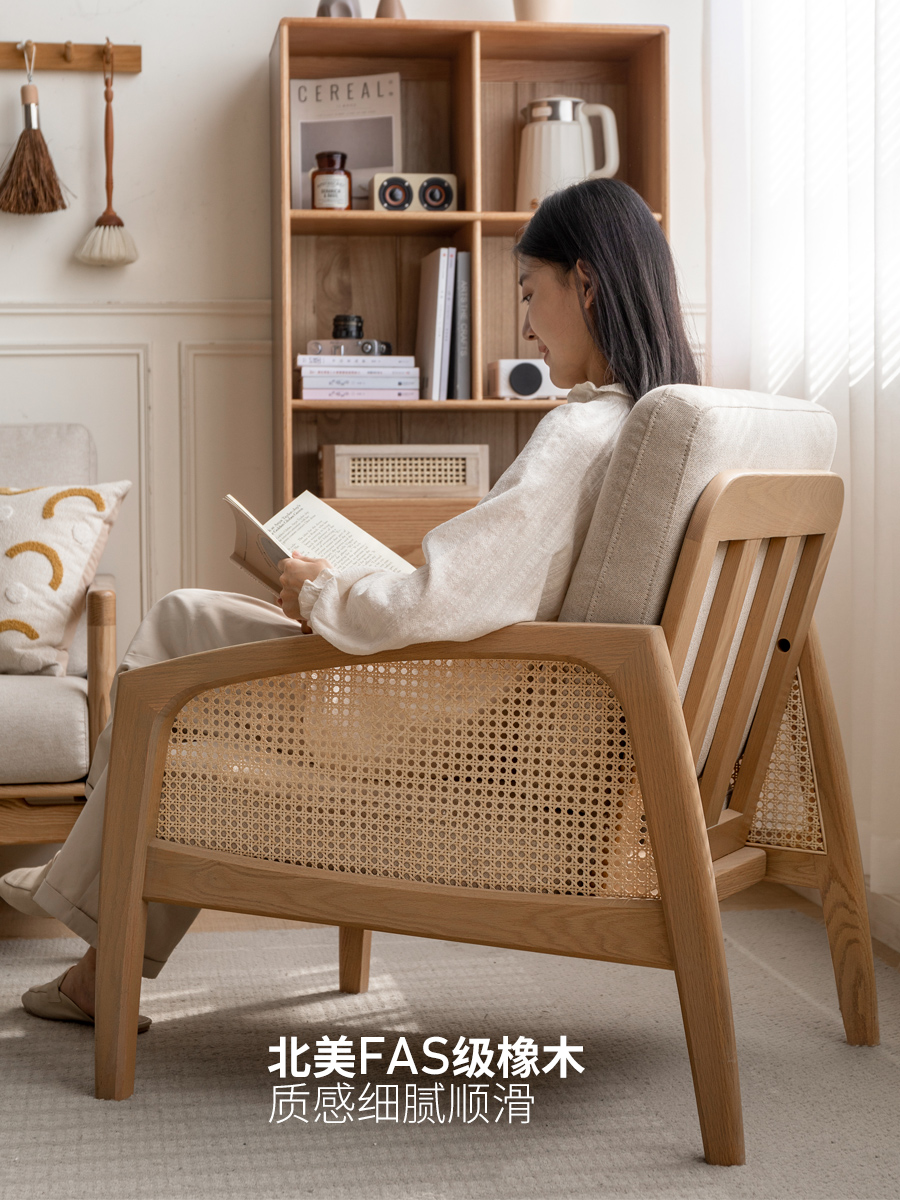 实木沙发椅简约小户型客厅单人休闲椅家用阳台橡木藤编椅