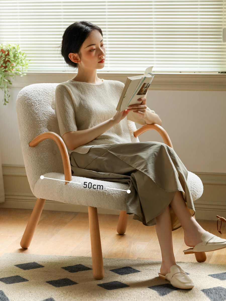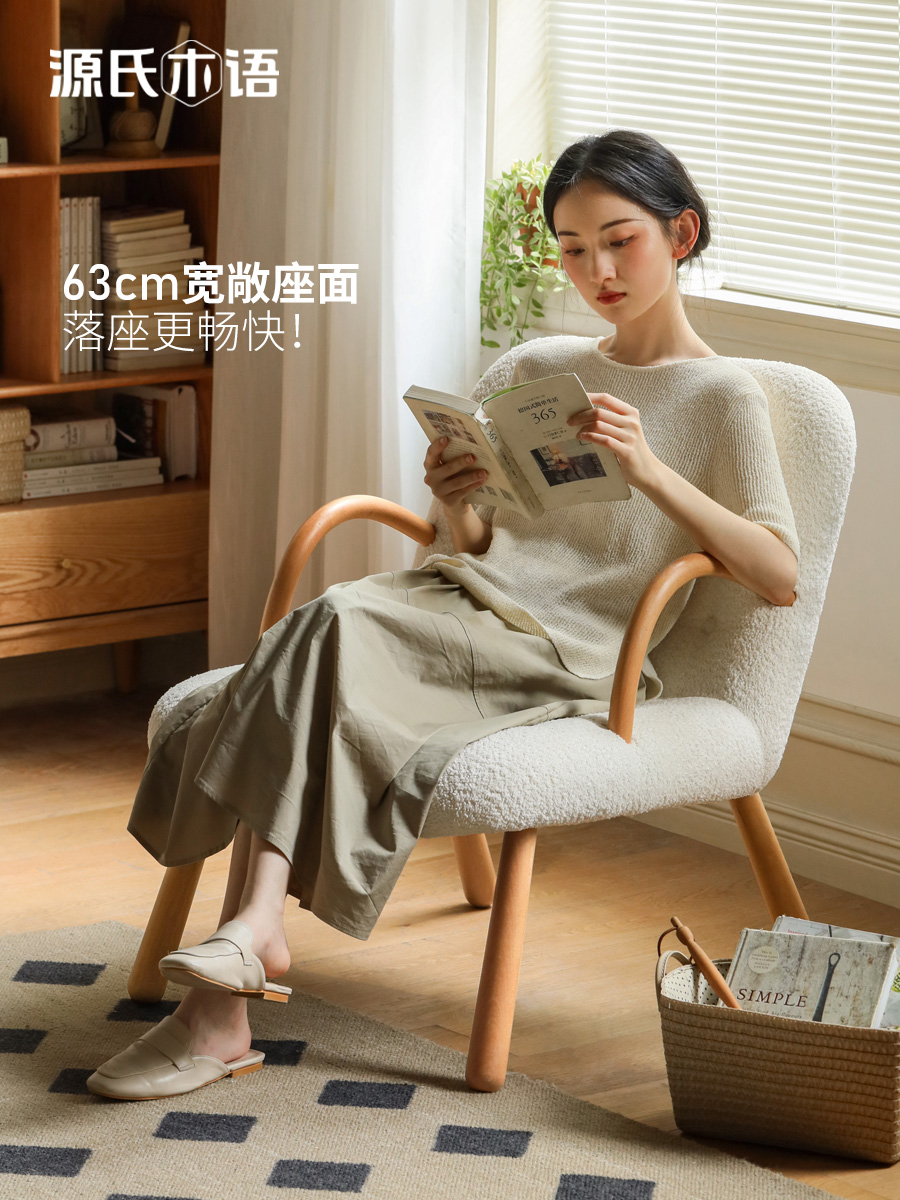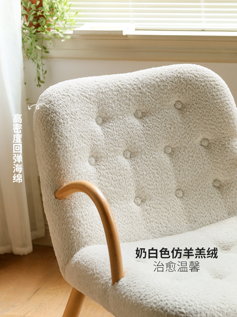 羊羔绒沙发椅北欧客厅阳台懒人躺椅小户型实木单人休闲椅